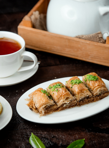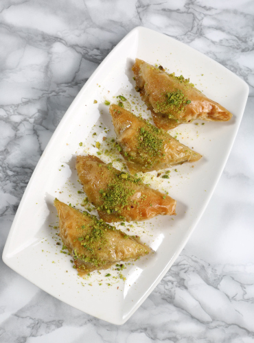 Hauchdünner Teig, reichlich Pistazien oder Walnüsse und perfekt abgestimmter Sirup. Krönen Sie Ihre süßen Momente mit unserem handgefertigten Baklava. In jedem Stück steckt Meisterhandwerk.